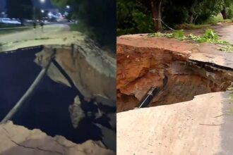 Cratera se forma após chuvas em avenida de Pacajus, na Grande Fortaleza…
