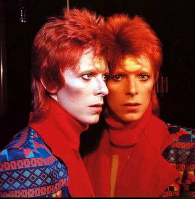 A criação de personas como Ziggy Stardust marcou uma ruptura definitiva na relação entre artista e palco. Os figurinos futuristas, muitos deles assinados pelo estilista japonês Kansai Yamamoto, transformaram apresentações em experiências visuais completas. Já a imagem eternizada na capa de Aladdin Sane, com o raio pintado no rosto, tornou-se um dos símbolos mais reconhecíveis da cultura pop do século XX. Em seguida, o personagem do Thin White Duke apresentou uma estética oposta: minimalista, fria e elegante, refletindo também mudanças profundas em sua abordagem musical.